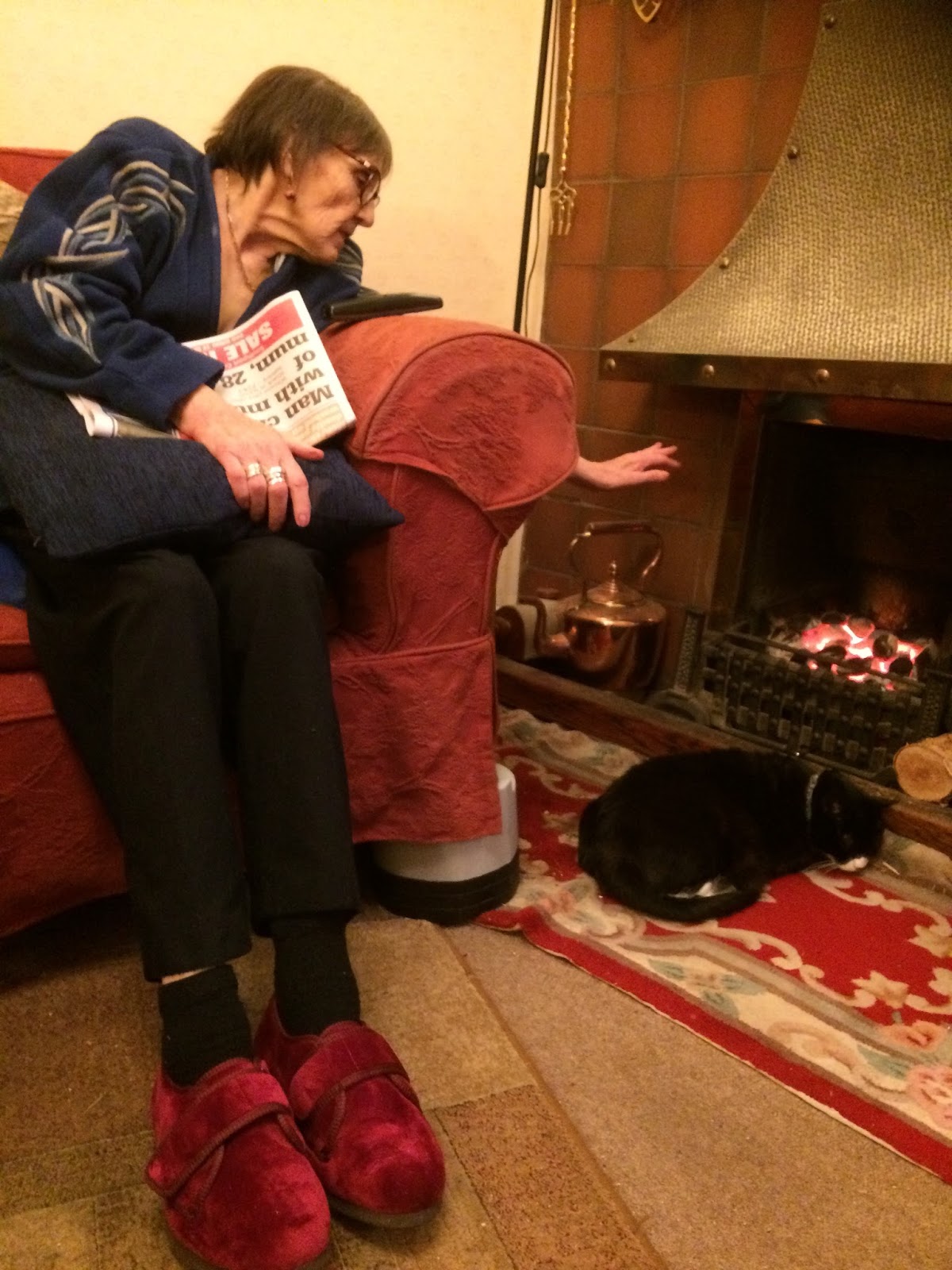She was nearly in the fire last night! notice the slippers in a nice Burgundy colour.